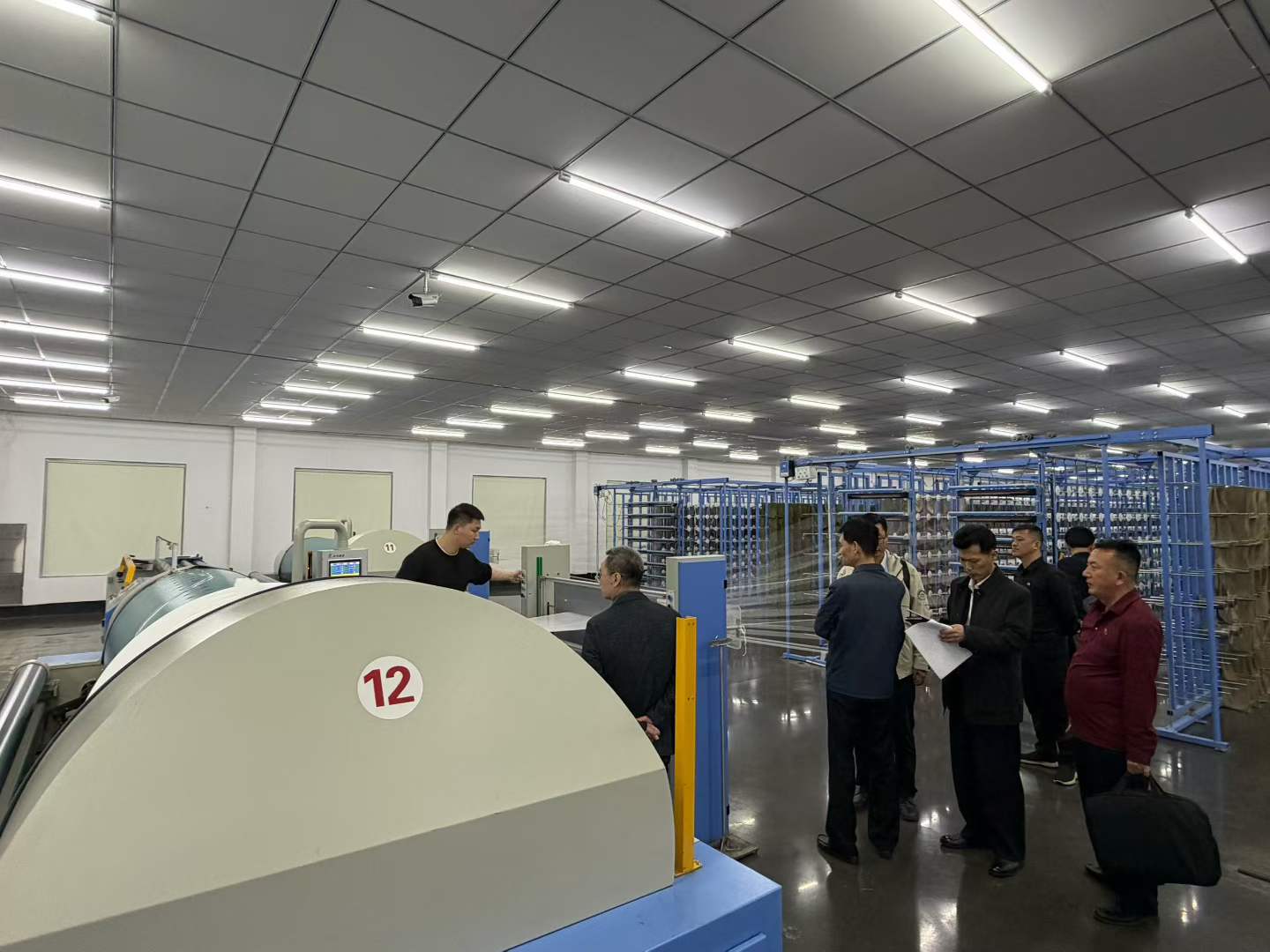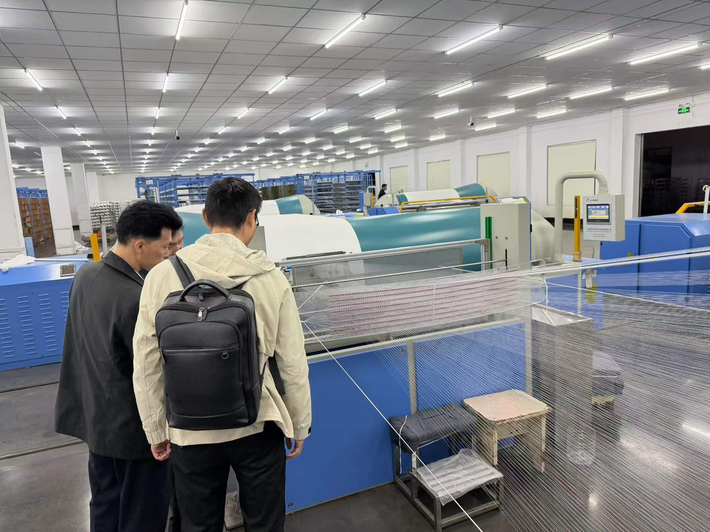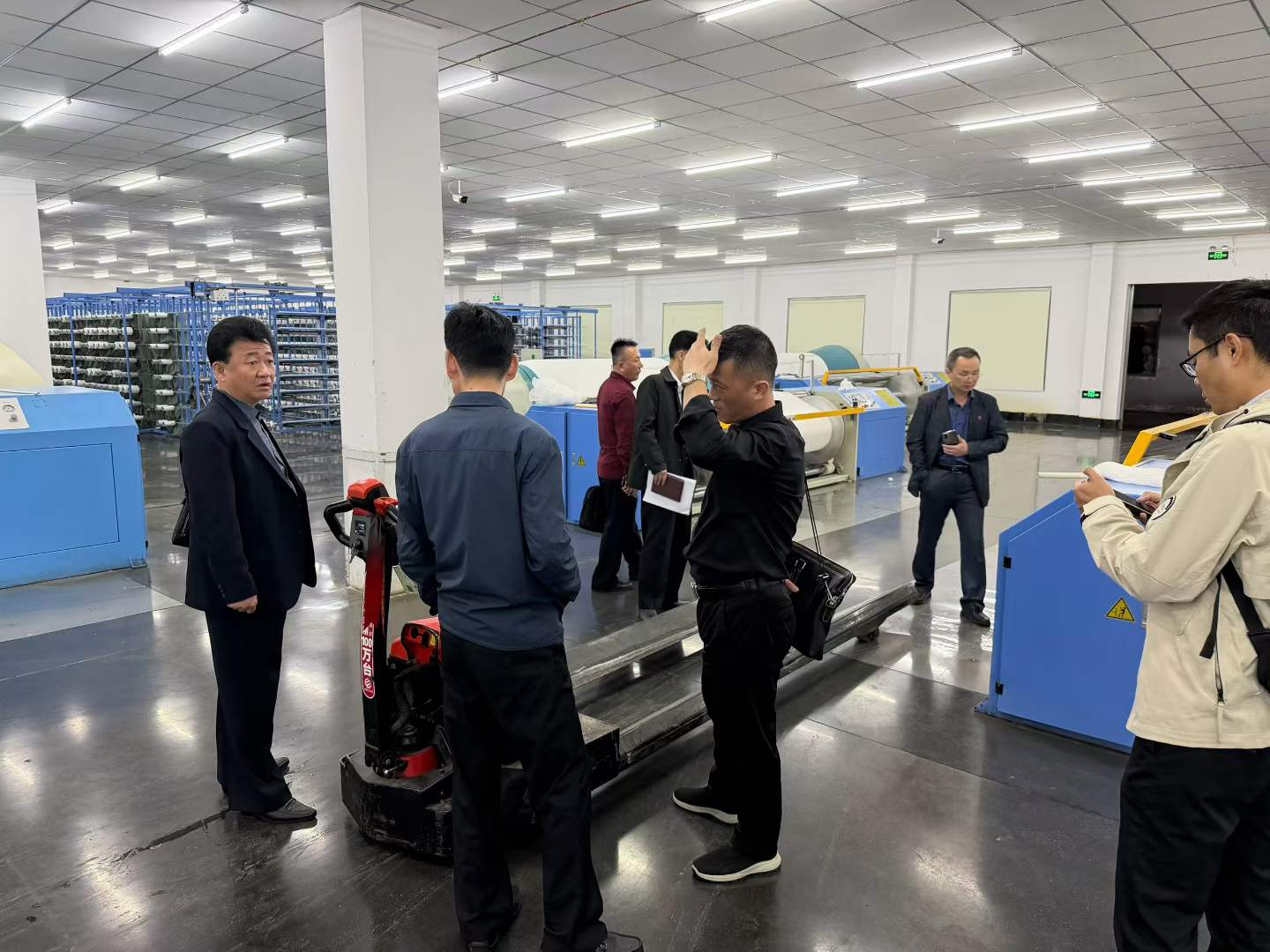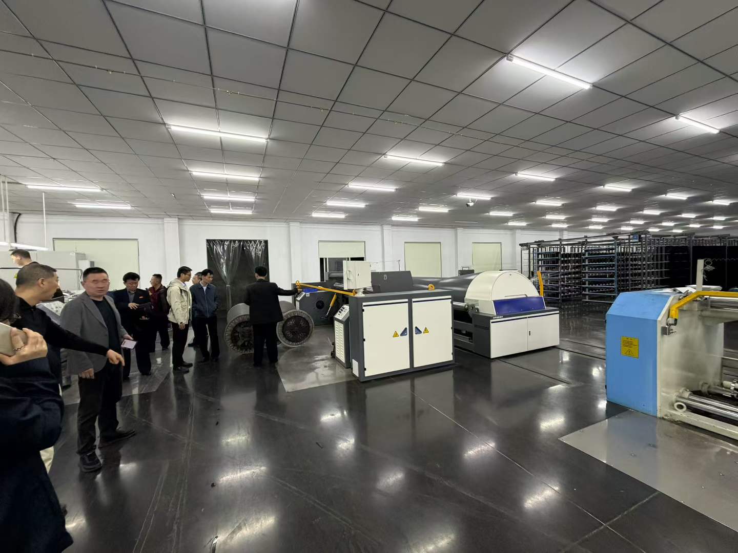 Делегация последовательно посетила производственный цех заказчика, внимательно изучила процесс работы наших сновальных машин и подробно ознакомилась с основными преимуществами оборудования в высокоскоростной работе, контроле натяжения, энергосбережении и снижении потребления энергии.